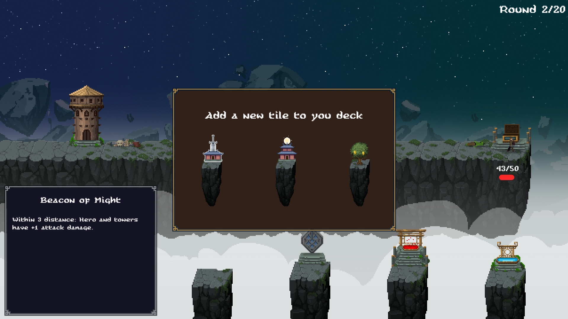 In Hero's Warden, you pick the Chosen One and guide them on an epic quest to slay your eternal enemy: the God of Chaos. Build a deck of tiles and fill the gaps in a crumbling world with spells, beacons and equipment to empower your hero. Even though you can’t control the hero directly, you can control the hero’s fate!